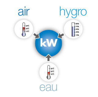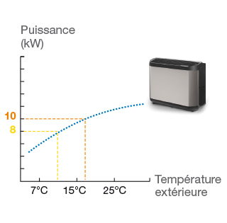 La potencia, expresada en kW, determina la cantidad de calor que se transfiere al agua. Varía en función de tres condiciones a las que está expuesta la bomba de calor durante su utilización: la temperatura del aire exterior, la higrometría del aire exterior y la temperatura de la piscina.